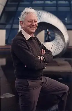 In 1956, Lederman worked on parity violation in weak interactions. R. L. Garwin, Leon Lederman, and R. Weinrich modified an existing cyclotron experiment, and they immediately verified the parity violation.[25] They delayed publication of their results until after Wu's group was ready, and the two papers appeared back-to-back in the same physics journal. Among his achievements are the discovery of the muon neutrino in 1962 and the bottom quark in 1977.[26] These helped establish his reputation as among the top particle physicists.[26]