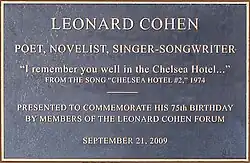 - ^ "Leonard Cohen honoured in Montreal one year after his death". Global News. Archived from the original on January 22, 2018. Retrieved January 22, 2018.