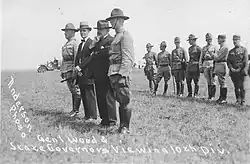 Wood was named Army Chief of Staff in 1910 by President William Howard Taft, whom he had met while both were in the Philippines; he is the only medical officer to have held the position.[59] As Chief of Staff, Wood implemented several programs, among which were the forerunner of the Reserve Officers' Training Corps (ROTC) program, and the Preparedness Movement, a campaign for universal military training and wartime conscription.[60] The Preparedness Movement led to implementation of the Selective Service System shortly before World War I.[60] As chief of staff, Wood reorganized the general staff into three divisions – Mobile Army, Coast Artillery, and War College – each headed by an assistant chief of staff.[61] The three divisions he created did not last, but the overall result of his reorganization was the recognition that decentralization, which continued under his successors, enabled streamlined planning and decision making, which facilitated operations and training as the army began to prepare for U.S. entry into the war.[61]