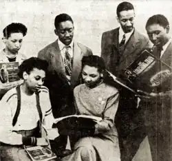 At Wilberforce, Price was a member of the Delta Sigma Theta sorority.[49] She sang and toured in the Wilberforce Singers at the same time that the ensemble's membership included opera singer Betty Allen[50] who was also Price's roommate at Wilberforce.[5] She was also a member of the Wilberforce Women's Glee Club under directors Flora Isabel Askew and Marie Ware.[51] In 1946 she was the soloist in Théodore Dubois's Les Sept paroles du Christ (The Seven Last Words of Christ) with the Wilberforce University Choir conducted by Charles Henri Woode.[52][53] I