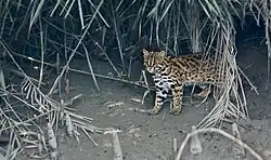 Leopard cats are considered an umbrella species, being the second most effective umbrella species for core habitat protection.[40] The only animal ahead of the leopard cat as an effective umbrella species is the Asian elephant.[40] Umbrella species' protection indirectly protects other species within its ecosystem.[40] As an umbrella species, leopard cats play a role in the conservation of many species within its ecosystem, being more effective than larger predators.[40] Along with being an umbrella species, leopard cats are indicator species, meaning their presence is an indicator of a healthy ecosystem.[41] When leopard cats are present, their prey species are more controlled and larger predator species' health is improved, meaning the entire ecosystem is healthier.[41]