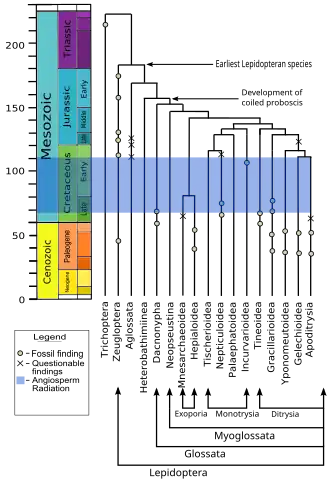 - ^ Sohn, JC., Labandeira, C.C. & Davis, D.R. The fossil record and taphonomy of butterflies and moths (Insecta, Lepidoptera): implications for evolutionary diversity and divergence-time estimates. Archived 7 March 2021 at the Wayback Machine BMC Evol Biol 15, 12 (2015). https://doi.org/10.1186/s12862-015-0290-8