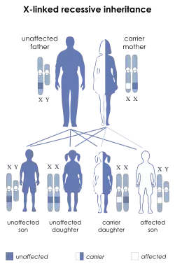 LNS is inherited in an X-linked recessive manner; the gene mutation is usually carried by the mother and passed on to her son, although one-third of all cases arise de novo (from new mutations) and do not have a family history. LNS is present at birth in baby boys. Most, but not all, persons with this deficiency have severe mental and physical problems throughout life. Cases in females are very rare.[7]