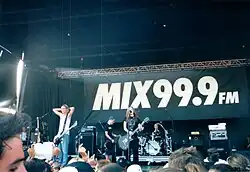 Although Lavigne was targeted to the teen audience, a marketing strategy credited with the successful launch of her career;[10][30] Lavigne performed on a host of radio-sponsored multi-artist holiday shows throughout the United States,[31] a marketing strategy that induced higher sales of the album during the season. She embarked on her first headlining tour, the Try to Shut Me Up Tour, which took place on 23 January 2003, and ended on 4 June 2003. Lavigne toured with her band—drummer Matthew Brann, bassist Mark Spicoluk, and guitarists Jesse Colburn and Evan Taubenfeld—which she had grouped after signing the deal.[16] In the tour, she included all songs off Let Go, and cover versions of "Knockin' on Heaven's Door" by Bob Dylan and "Basket Case" by Green Day.[32]
