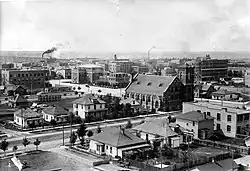 Between 1907 and 1913, a development boom occurred in Lethbridge, making it the main marketing, distribution and service centre in southern Alberta.[12] Such municipal projects as a water treatment plant, a power plant, a Lethbridge Transit, a streetcar system, and Exhibition Park—as well as a construction boom and rising real estate prices—transformed the mining town into a significant city.[12] Between World War I and World War II, however, the city experienced an economic slump. Development slowed, drought drove farmers from their farms, and coal mining rapidly declined from its peak.[12] After World War II, irrigation of farmland near Lethbridge led to growth in the city's population and economy. Lethbridge became a centre for post-secondary education in Southern Alberta with the opening of Lethbridge Polytechnic (formerly Lethbridge College) in April 1957 and the University of Lethbridge in 1967.[12]