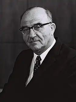 Levi Eshkol (Hebrew: לֵוִי אֶשְׁכּוֹל [leˈvi ʔeʃˈkol] ⓘ; 25 October 1895 – 26 February 1969), born Levi Yitzhak Shkolnik (Hebrew: לוי יצחק שקולניק), was the prime minister of Israel[3] from 1963 until his death from a heart attack in 1969. A founder of the Israeli Labor Party, he served in numerous senior roles, including Minister of Defense (1963–1967) and Minister of Finance (1952–1963).