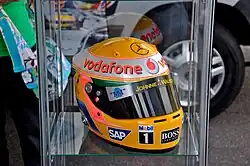 Ayrton Senna was a major influence on Hamilton's driving style; he recalled: "I think it's partly because I watched [him] when I was young and I thought 'this is how I want to drive when I get the opportunity' and I went out there and tried it on the kart track. My whole approach to racing has developed from there."[203] He has been compared to Senna in raw speed.[204] In 2010, Hamilton drove Senna's original title-winning McLaren MP4/4 as part of a tribute documentary by the BBC motoring show Top Gear. In the documentary, along with fellow racing drivers, he named Senna as the number one driver ever.[205][206]