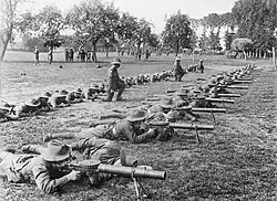 Men of the 28th Battalion of the 2nd Australian Division practising Lewis gun drill at Renescure