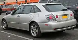 In July 2000, a hatchback/station wagon model, the AS300 (chassis code JCE10), was introduced featuring a 3.0-litre 2JZ-GE straight-six engine. Equipped with rear- or all-wheel drive (JCE10, RWD Gita wagon; JCE15, 4WD Gita wagon), the AS300 was only available with an automatic gearbox; a five-speed automatic for the RWD Gita wagon and a four-speed automatic for the 4WD Gita wagon. The six-cylinder version (2JZ-GE) was only available in Japan on the Gita models. Additionally, a six-speed manual transmission was introduced to the AS200 (chassis code GXE10). In the US, the IS 300 sedan debuted in July 2000 as 2001 model and the wagon debuted in 2001 as a 2002 model with the same 3.0-litre six-cylinder engine (the 2.0-litre six-cylinder was not available), while in Europe, the IS 300 joined the IS 200 in the model lineup. The IS 300 models were initially only available with the five-speed automatic transmission in all markets. A five-speed manual – the six-speed manual from the 2-litre model was not designed for the torque put out by the larger 2JZ-GE engine – was made available in the US in 2001 for the 2002 model year.[13] The manual option was not available on the SportCross wagon. Lexus aimed for 15 percent of American IS 300 sales to be manuals.[13] Visually, the exterior of the European IS 200 Sport and 300 were almost identical, the only differences being the boot insignia and the larger-engined model initially having clear front indicators (later generalized throughout the range).