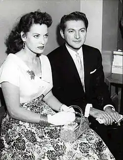 Liberace had to have a piano to match his growing presence, so he bought a rare, oversized, gold-leafed Blüthner Grand, which he hyped up in his press kit as a "priceless piano".[23] Later, he performed with an array of extravagant, custom-decorated pianos, some encrusted with rhinestones and mirrors. He moved to the Los Angeles neighborhood of North Hollywood in 1947 and was performing at local clubs, such as Ciro's and The Mocambo, for stars such as Rosalind Russell, Clark Gable, Gloria Swanson and Shirley Temple. He did not always play to packed rooms, and he learned to perform with extra energy to thinner crowds to maintain his enthusiasm.[24]