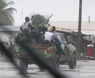 The National Patriotic Front of Liberia, a rebel group led by Charles Taylor, launched an insurrection in December 1989 against Doe's government with the backing of neighboring countries such as Burkina Faso and Ivory Coast. This triggered the First Liberian Civil War.[64] By September 1990, Doe's forces controlled only a small area just outside the capital, and Doe was captured and executed in that month by rebel forces.[65]