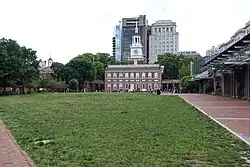 ![]() The Liberty Bell outside Independence Hall in Philadelphia in April 2017 | |