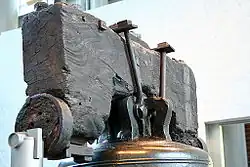 The analysis concluded that, on the second recasting, instead of adding pure tin to the bell metal, Pass and Stow added cheap pewter with a high lead content, and incompletely mixed the new metal into the mold.[17] The result was "an extremely brittle alloy which not only caused the Bell to fail in service but made it easy for early souvenir collectors to knock off substantial trophies from the rim".[18]