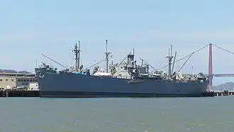 1. ^ these bulk storage ships were USS Peter H. Burnett (IX-104), USS Antelope (IX-109), USS Don Marquis (IX-215), USS Triana (IX-223), USS Inca (IX-229)