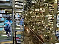 A reference library does not lend books and other items; instead, they can only be read at the library itself. Typically, such libraries are used for research purposes, for example at a university. Some items at reference libraries may be historical and even unique. Many lending libraries contain a "reference section", which holds books, such as dictionaries, which are common reference books, and are therefore not lent out.[70] Such reference sections may be referred to as "reading rooms" or "study rooms", which may also include newspapers and periodicals.[71] An example of a reading room is the Hazel H. Ransom Reading Room at the Harry Ransom Center of the University of Texas at Austin, which maintains the papers of literary agent Audrey Wood.[72]