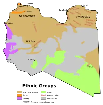 - ^ Dupree, Louis (1958). "The Non-Arab Ethnic Groups of Libya". Middle East Journal. 12 (1): 33–44.