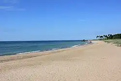 Liepāja is situated on the coast of the Baltic Sea in the south-western part of Latvia. The westernmost geographical point of Latvia is located approximately 15 km (9 mi) to the south thus making Liepāja Latvia's furthest west city. The city occupies a 1.5-6.5 km wide coastal dune embankment and a foothill plain in the Bartau Plain of the Seaside Lowland. Liepāja is surrounded by the Dienvidkurzeme Region, and is bordered to the north by Medze Parish, to the east by Grobiņa Parish, and to the south by Nīca Parish, with its western border following the Baltic Sea coast. The Trade Channel (Tirdzniecības kanāls) connects the lake to the sea dividing the city into southern and northern parts, which are often referred to as Vecliepāja (Old Town) and Jaunliepāja (New Town) respectively. Along the coast, the city extends northwards until it reaches the Karosta Channel (Karostas kanāls). North of the Karosta Channel is an area called Karosta which is now fully integrated into Liepāja and is the northernmost district of the city. Liepāja's coastline consists of an unbroken sandy beach and dunes. Natural areas cover about one third of the territory of the city. These areas are mostly located on the outskirts of the city and are not connected to the small green areas in the central part of the city.[35][36]