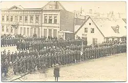 In Liepāja, a coup organized by Germans took place on 16 April 1919 and Ulmanis government was forced to flee and was replaced by Andrievs Niedra.[23] The Ulmanis government found shelter on the steamship Saratov in Liepāja port. In May a British cruiser squadron arrived at Liepāja to support Latvian independence and requested the Germans to leave.[24]