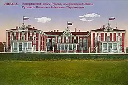 In 1857, an Imperial Decree provided for a new railway to Libau.[16] That year the engineer Jan Heidatel developed a project to reconstruct the port. In 1861–1868 the project was realized – including the building of a lighthouse and breakwaters. Between 1877 and 1882 the political and literary weekly newspaper Liepājas Pastnieks was published – the first Latvian language newspaper in Libau.[17] In the 1870s the further rapid development of Russian railways, especially the 1871 opening of the Libava-Kaunas and the 1876 Liepāja–Romny Railways, ensured that a large proportion of central Russian trade passed through Libau.[18] By 1900, 7% of Russian exports were passing through Libau. The city became a major port of the Russian Empire on the Baltic Sea, as well as a popular resort. During this time of economic expansion, the city architect Paul Max Bertschy provided the design for many of the city's both public and private buildings, making an imprint on the architecture which can still be seen today.[19]