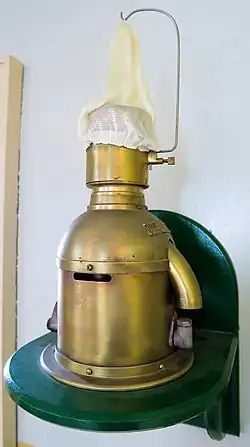 Whale oil was also used with wicks as the source of light. Kerosene became popular in the 1870s and electricity and acetylene gas derived on-site from calcium carbide began replacing kerosene around the turn of the 20th century.[24] Carbide was promoted by the Dalén light, which automatically lit the lamp at nightfall and extinguished it at dawn.