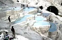 Travertine limestone terraces of Pamukkale, Turkey.