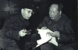 Lin and Mao generally had a close personal relationship,[21] but some accounts claim that Lin sometimes made disparaging comments about Mao in private, and that Lin's support of Mao was largely for the pursuit of power.[22] After arriving in Yan'an, Lin became the principal of the newly founded Chinese People's Anti-Japanese Military and Political University. In 1937, Lin married one of the students there, a girl named Liu Ximin, who had earned the nickname "University Flower".[23]