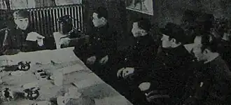 Lin was absent for most of the fighting during World War II, but was elected the sixth-ranking Central Committee member in 1945 based on his earlier battlefield reputation.[19] After the Japanese surrender, the Communists moved large numbers of troops to Manchuria (Northeast China), and Lin Biao relocated to Manchuria to command the new "Communist Northeast Military District". The Soviets transferred captured Japanese military equipment to the Communists, making Lin's army one of the most well-equipped Communist forces in China. By the time that units from the Kuomintang (Nationalists) were able to arrive in the major cities of Manchuria, Lin's forces were already in firm control of most of the countryside and surrounding areas.[28]