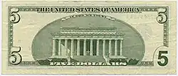 The memorial has appeared on the back of the U.S. five-dollar bill since 1929.[54] The front of the bill bears Lincoln's portrait.