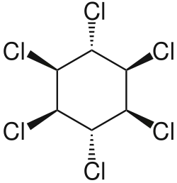 Lindane, also known as gamma-hexachlorocyclohexane (γ-HCH), gammaxene, Gammallin and benzene hexachloride (BHC),[2] is an organochlorine chemical and an isomer of hexachlorocyclohexane that has been used both as an agricultural insecticide and as a pharmaceutical treatment for lice and scabies.[3][4]