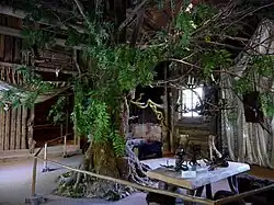 From the outside, a simple wooden house with walls made of uniform, peeled tree trunks, the interior was inspired by Richard Wagner's directions for the First Act of the Die Walküre and a corresponding stage design by Josef Hoffman from 1876. In the middle of the hall there is the ash tree from which Siegmund pulled the sword Gram with magical power.