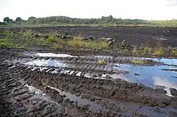 Lindow Moss is a peat bog in Lindow, an area of Wilmslow, Cheshire, which has been used as common land since the medieval period. It formed after the last ice age, one of many such peat bogs in north-east Cheshire and the Mersey basin that formed in hollows caused by melting ice.[3] Investigations have not yet discovered settlement or agricultural activity around the edge of Lindow Moss that would have been contemporary with Lindow Man, but analysis of pollen in the peat suggests there was some cultivation in the vicinity.[4]