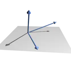 • , and are independent because and are independent of each other and is not a linear combination of them or, equivalently, because they do not belong to a common plane. The three vectors define a three-dimensional space.