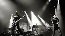 In May 2009, Linkin Park announced they were working on a fourth studio album, which was planned to be released in 2010. Shinoda told IGN that the new album would be 'genre-busting,' while building off of elements in Minutes to Midnight.[83] He also mentioned that the album would be more experimental and "hopefully more cutting-edge".[84] Bennington also addressed the media to confirm that Rick Rubin would return to produce the new album.[85] The band later revealed the album would be called A Thousand Suns.[86] While working on the new album, Linkin Park worked with successful film composer Hans Zimmer to produce the score for Transformers: Revenge of the Fallen.[87] The band released a single for the movie, titled "New Divide".[88][89] Joe Hahn created a music video for the song, which featured clips from the film.[88] On June 22, Linkin Park played a short set in Westwood Village after the premier of the movie.[90] After completing work for Transformers: Revenge of the Fallen, the band returned to the studio to finalize their album.[91]