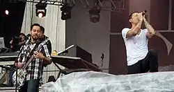 Linkin Park also participated in numerous charitable events, which included raising money to benefit victims of Hurricane Charley in 2004 and later Hurricane Katrina in 2005.[4] The band donated $75,000 to the Special Operations Warrior Foundation in March 2004.[53] They also helped relief efforts for the 2004 Indian Ocean tsunami victims by staging several charity concerts and setting up an additional fund called Music for Relief.[54] The band participated at Live 8, a series of charitable benefit concerts set up to raise global awareness.[55] Alongside Jay-Z, the band performed on Live 8's stage in Philadelphia, Pennsylvania, to a global audience.[55] The band would later be reunited with Jay-Z at the Grammy Award Ceremony 2006, during which they performed "Numb/Encore", en route to winning a Grammy for Best Rap/Sung Collaboration.[56][57] They were joined on stage by Paul McCartney who added verses from the song "Yesterday".[58][59] They would later go on to play at the 2006 Summer Sonic music festival, which was hosted by Metallica in Japan.[60]