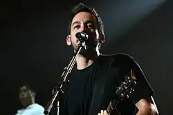 In an interview with Fuse, Shinoda confirmed that Linkin Park had begun recording their sixth studio album in May 2013.[148] The band released the first single from their upcoming album, titled, "Guilty All the Same" (featuring Rakim) on March 6, 2014, through Shazam.[149] The single was later released on the following day by Warner Bros. Records and debut at No. 27 on the US Billboard Rock Airplay charts before peaking at No. 1 on the Mainstream Rock charts in the following weeks.[150][151] Shortly after the single's release, the band revealed their sixth album would be titled The Hunting Party.[152] The album was produced by Shinoda and Delson, who wanted to explore musical elements from Hybrid Theory and the band's earlier material.[153] Shinoda commented the album is a "90s style of rock record". He elaborated, "It's a rock record. It's loud and it's rock, but not in the sense of what you've heard before, which is more like '90s hardcore-punk-thrash.'[154] The album includes musical contributions from rapper Rakim, Page Hamilton of Helmet, Tom Morello of Rage Against the Machine, and Daron Malakian of System of a Down.[155][156] The songs "Until It's Gone",[157] "Wastelands",[156] "Rebellion" (featuring Daron Malakian),[158] and "Final Masquerade"[159] were released as singles from the album. The Hunting Party was released on June 13, 2014,[160] in most countries, and later released in the United States on June 17.[161]
