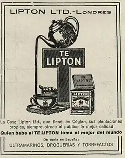 - ^ "From the tea garden to the tea pot: Sir Thomas Lipton's Vision". Lipton Tea. Archived from the original on 29 October 2014. Retrieved 29 October 2014.