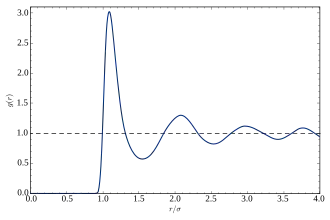 An equivalent representation of these correlations is the radial distribution function , which is related to the Fourier transform of .[30] It represents a spatial average of a temporal snapshot of pair correlations in the liquid.