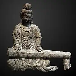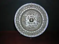 - Hill censer: The hill censer, a vessel used for burning incense, dates from the Han dynasty (206 BC – AD 220). The censers are shaped like mountains and were used for religious rituals. The shape of the hill censer acts as a visual aid for envisioning the sacred mountains that were said to have been inhabited by Taoist immortals.[256] Hill censers were originally designed for Taoist rituals, but were later used by Chinese Buddhists.[257] Hill censers often include carvings of wilds animals and birds. Some censers depict waves at the foundation of the vessel, said to be the waves of the East China Sea.[258] A hole at the top of the censer releases the smoke of the incense.[258]