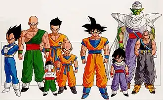 The Dragon Ball series features an ensemble cast of main characters.[17] The most prominent protagonist of the Dragon Ball series is Goku, who along with Bulma forms the Dragon Team to search for the Dragon Balls at the beginning of the series. After the truth of Goku's heritage is revealed, Saiyan characters play a central narrative role from Dragon Ball Z onwards: Bardock and Trunks from an alternate future timeline serve as the protagonists of their respective side stories, while Goku's son Gohan briefly assumes the role of series protagonist following the conclusion of the Cell Games Saga. Vegeta is featured as the co-protagonist for Dragon Ball Super.