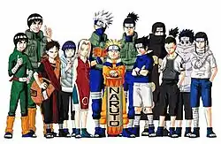 As Kishimoto developed the series, he created the three primary characters as a basis for the designs of the other three-person teams.[1] He also used characters in other shōnen manga as references in his design of the characters, a decision that was criticized by several anime and manga publications.[2][3] The characters that Kishimoto developed, however, were praised for incorporating many of the better aspects of previous shōnen characters, although many publications lamented the perceived lack of growth beyond such stereotypes.[4][5] The visual presentation of the characters was commented on by reviewers, with both praise and criticism given to Kishimoto's work in the manga and anime adaptations.[3][6]