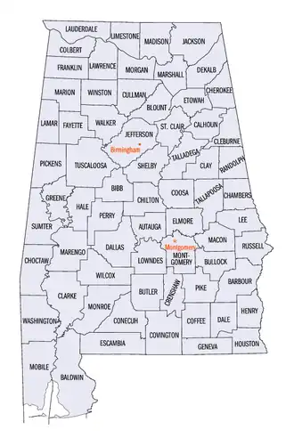 - ^ "List of Alabama Counties". Bama Politics. October 23, 2018. Retrieved August 4, 2020.