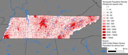 - ^ "U.S. Census Bureau QuickFacts: Tennessee". United States Census Bureau. Retrieved March 14, 2025.