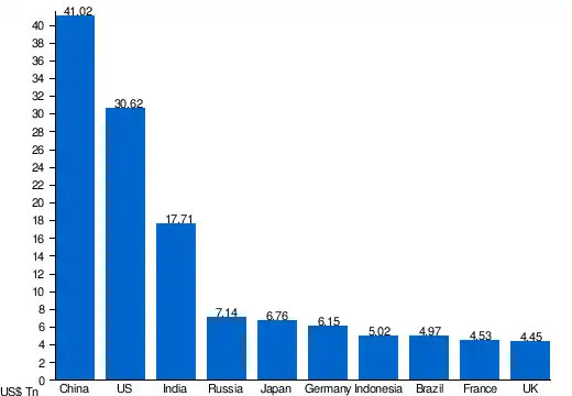 | Largest economies in the world by GDP (PPP) in 2025 according to International Monetary Fund estimates[1] |