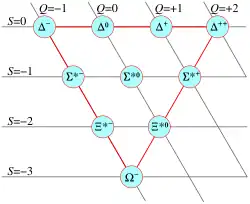 - Hyperons, such as the Λ, Σ, Ξ, and Ω particles, which contain one or more strange quarks, are short-lived and heavier than nucleons. Although not normally present in atomic nuclei, they can appear in short-lived hypernuclei.