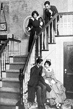 One real aspect that Alcott focused on was marriage. Marriage was exceedingly prevalent in the lives of women in the nineteenth century; during that time 93% of women in America married.[13] However, what was special about the marriages the March women made was their equal partnerships within their relationships. Daniel Shealy writes: "Alcott gave serious thought to the marriages in part two and set out to instruct her readers, especially young women, on the importance of egalitarian relationships between husbands and wives."[13] The equal unions between man and wife can be seen through each relationship the March women have, especially between Mr. and Mrs. March and Meg and John Brooke, as they both share equal footing in the household and in the decisions regarding their children.