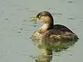 The little grebe (Tachybaptus ruficollis), also known as the dabchick, is a member of the grebe family of water birds. The genus name is from Ancient Greek takhus "fast" and bapto "to sink under". The specific ruficollis is from Latin rufus "red" and Modern Latin -collis, "-necked", itself derived from Latin collum "neck".[2]