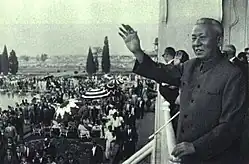 Liu spoke very strongly in favor of the Great Leap Forward at the Eighth CCP National Congress in May 1958.[14] At this Congress Liu stood together with Deng Xiaoping and Peng Zhen in support of Mao's policies against those who were more critical, such as Chen Yun and Zhou Enlai.