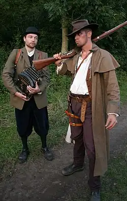 The participants in a LARP physically portray characters in a fictional setting, improvising their characters' speech and movements somewhat like actors in improvisational theatre.[4] This is distinct from tabletop role-playing games, where character actions are described verbally.[1] LARPs may be played in a public or private area and may last for hours or days.[5][6] There is usually no audience.[7] Players may dress as their character and carry appropriate equipment, and the environment is sometimes decorated to resemble the setting.[8] LARPs can be one-off events or a series of events in the same setting, and events can vary in size from a handful of players to several thousand.[9][10]