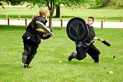 - ^ (Young 2003:7-8) "Live combat... requires the players' abilities to perform an action. You want to hit someone with a sword? You have to actually hit the player with a prop representing a sword, usually a padded weapon. ... Simulated combat is more abstract. It uses an external method that does not rely on player ability. For example, if you want to hit the other person with a sword, you may have to make a rock-paper-scissors challenge."