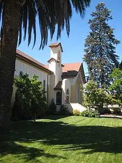 During the first seven years of the 1800s, five hundred and two individuals were baptized at Mission San Jose from the four tribelets in the Livermore Valley.[12] In this time, Spanish military conducted raids throughout the East Bay using the valley as a natural corridor for movement.[12] Deaths from measles outbreaks were recorded in Mission San Jose in 1806 which forced recruiting beyond the Livermore Valley and into the Altamont range.[13] The Livermore-Amador Valley from 1800 to about 1837 was primarily used as grazing land for the Mission San Jose's growing herds of cattle, sheep and horses. The valley helped San Jose Mission emerge as one of the more wealthy Spanish enclaves. As a result of the secularization of the mission system, in 1839, two large ranchos were created that encompassed the Livermore Valley; Rancho Las Positas and Rancho Valle de San Jose. Many Native groups left the San Jose Mission during this period and reestablished themselves in communities in the East Bay, including the Livermore Valley.[14] Because indigenous food resources there were depleted, they tried to support themselves by working as laborers. But as the population grew thanks to the Gold Rush which started in 1848 and the workers on the railroad, it became more and more difficult to find work; by 1906, there were only 28 individuals left, and by 1914 most of the remaining population was gone.[15]